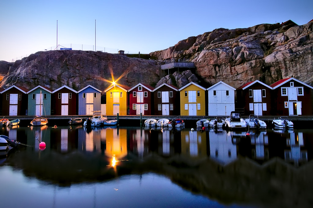 Die berühmte Hafenpromenade von Smögen ist zweifellos eine der schönsten und meistfotografierten Küstenstraßen Schwedens. Bunte Holzhäuser in Rot, Gelb und Blau reihen sich entlang des Wassers aneinander und beherbergen Restaurants, Cafés, Kunstgalerien und kleine Geschäfte. Besonders bei Sonnenuntergang entfaltet die Promenade ihre volle Magie, wenn das warme Licht die Fassaden zum Leuchten bringt. Ein Spaziergang hier ist obligatorisch und bietet unzählige Fotomotive sowie die Möglichkeit, das authentische schwedische Küstenleben zu erleben.