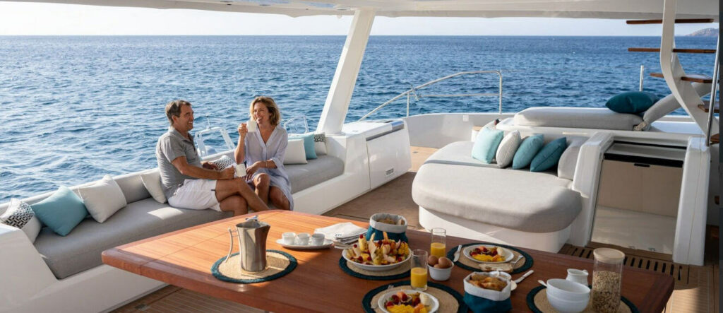 Ein Skipper schläft an Bord. Er braucht daher eine eigene Kabine (oder einen Platz im Bug) auf dem Boot. Achten Sie also bei der Buchung darauf, dass Ihr Boot über ausreichend Schlafmöglichkeiten verfügt. Was die Mahlzeiten betrifft, so ist es üblich, den Skipper wie die übrige Besatzung zu verpflegen. Wenn Sie Ihre Yacht mit einem Skipper (und/oder einer Crew) gechartert haben, können Sie diese natürlich fragen, ob sie am Abend mit Ihnen essen möchten. Wenn Sie etwas mehr Privatsphäre wünschen und den Abend lieber allein mit Ihrer Familie oder Ihren Freunden verbringen möchten, ist das auch kein Problem – aber Sie sollten Vorräte an Bord lassen oder ihnen etwas Bargeld für Lebensmittel überlassen, damit sie sich selbst etwas zu essen kaufen können.